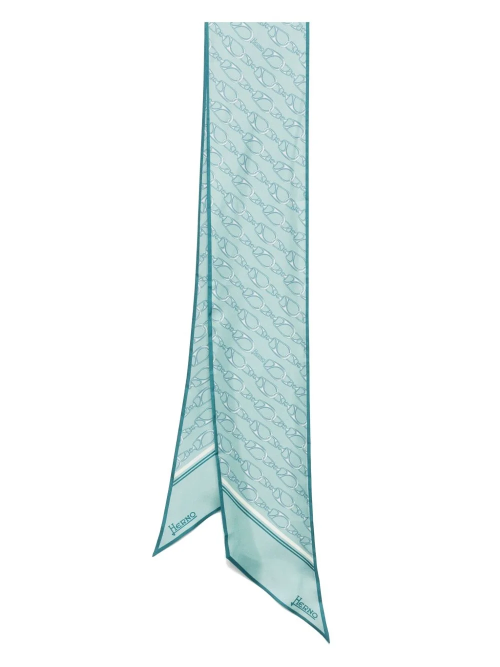 silk scarf Highlights - Aqua green - Logo-print edge - Solid border - Pointed tip Made in Italy Composition Silk 100% SIZE & FIT Measurement LENGTH 64.96 in(165 cm) WIDTH 5.9 in(15 cm)