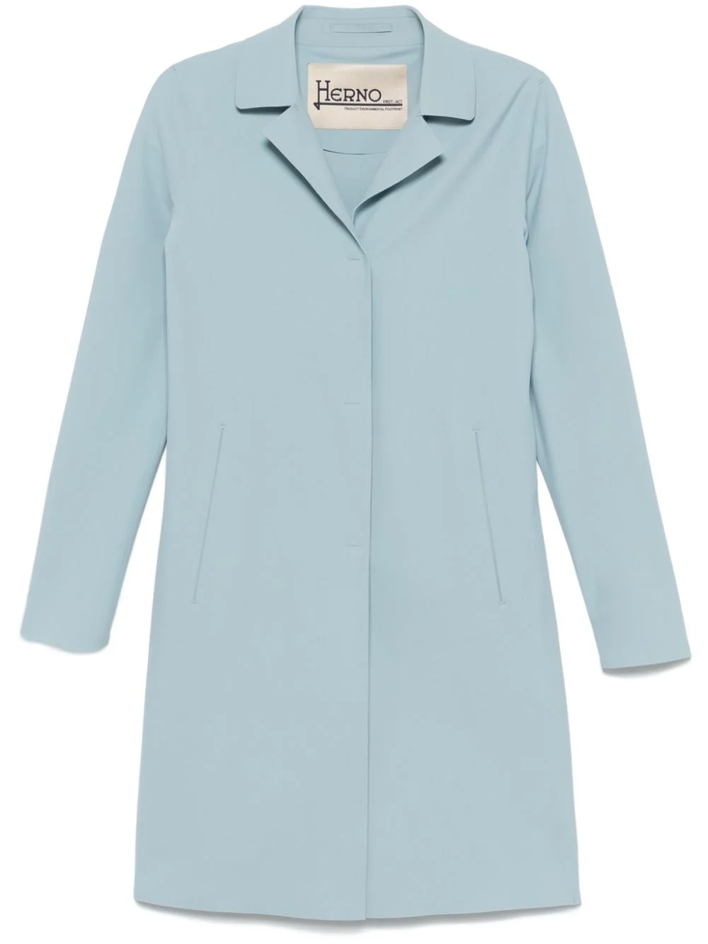 single-breasted coat Highlights - Light blue - Concealed front press-stud fastening - Two side slit pockets - Notched lapels - Long sleeves Made in Italy Composition Polyamide 75%, Elastane 25% SIZE & FIT Model measurements Height 5 ft 10 in(1.78 m) Bust/Chest 33.46 in(85 cm) Hips 36.22 in(92 cm) Waist 23.22 in(59 cm) FittingInformation Designed for a slim fit that sits just away from the body offering a close yet comfortable fit Made from a midweight stretch fabric, this piece offers elasticity and flexibility when worn