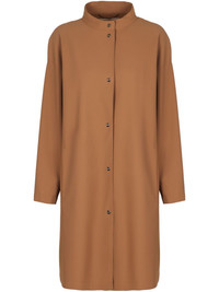 single-breasted jacket Highlights - Caramel brown - Front button fastening - High neck - Long sleeves Imported Composition Polyamide 75%, Elastane 25% SIZE & FIT FittingInformation Designed to be unstructured, offering a loose fit throughout Made from a midweight stretch fabric, this piece offers elasticity and flexibility when worn