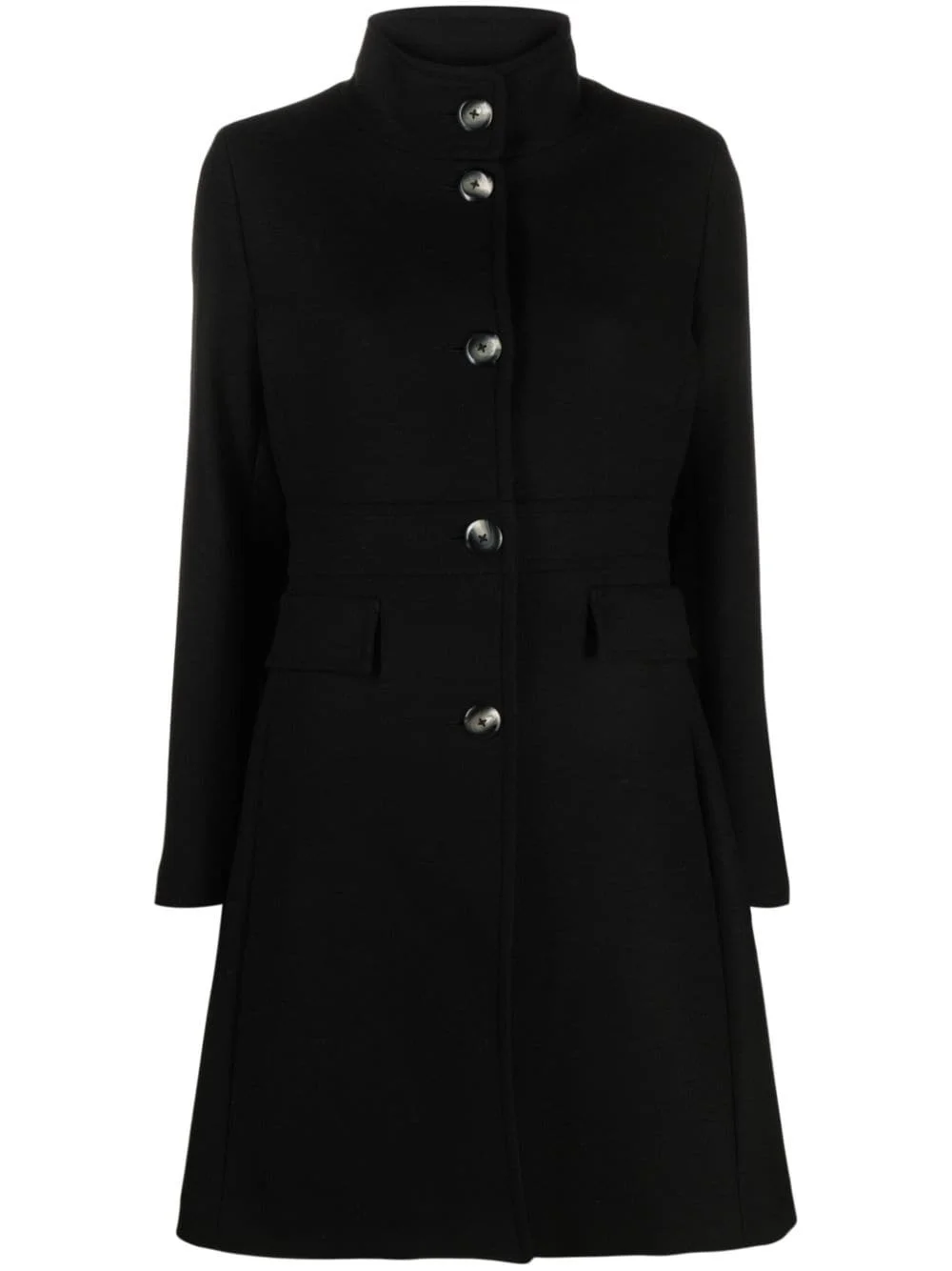 single-breasted wool coat Highlights - Black - Wool - High neck - Front button fastening - Two front flap pockets - Long sleeves - Knee-length - Straight hem Imported Composition Wool 100% SIZE & FIT Model measurements Height 5 ft 10 in(1.78 m) Bust/Chest 31.49 in(80 cm) Hips 35.03 in(89 cm) Waist 23.62 in(60 cm) FittingInformation Designed for a slim fit that sits just away from the body offering a close yet comfortable fit Made from a midweight non-stretch fabric This piece fits true to size – take your usual size Washing instructions Dry Clean Only