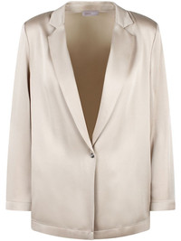 single-button satin blazer Highlights - Beige - Satin finish - Single front button fastening - Wide notch lapels - Plunging v-neck - Long sleeves - Straight hem Imported Composition Acetate 71%, Viscose 29%