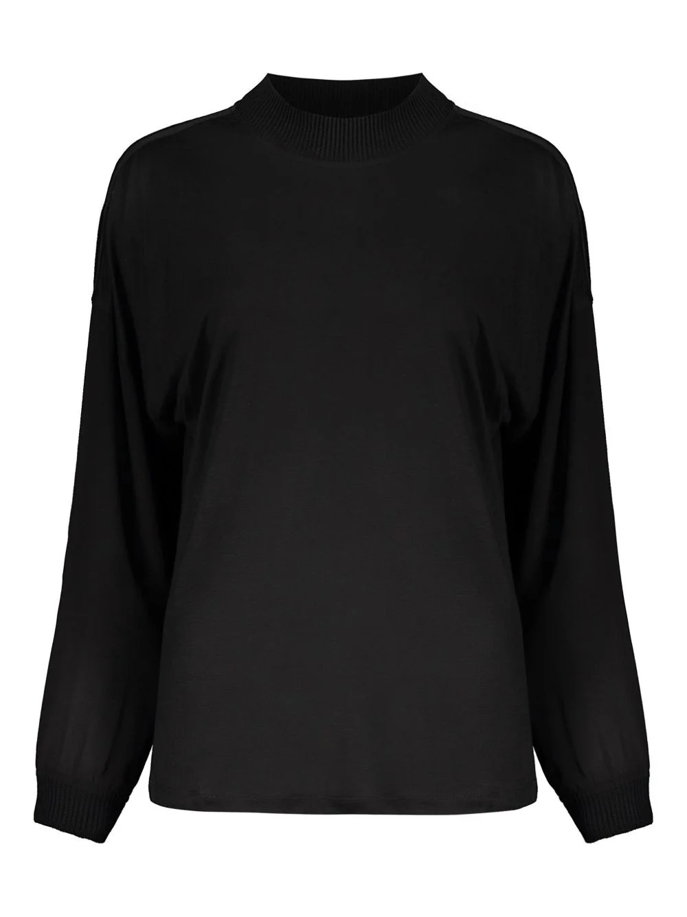 relaxed-fit long-sleeve sweater Highlights - Black - High neck - Dropped shoulders - Gathered cuffs - Loose silhouette - Ribbed detailing Imported Composition Lyocell 100%, Cotton 50%, Viscose 50%