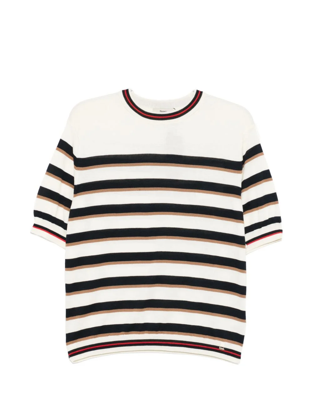 striped short-sleeve T-shirt Highlights - White - Striped - Round neck - Short sleeves - Knitted construction - Ribbed trim Made in Italy Composition Cotton 100% Washing instructions Read Manufacturer Guidelines