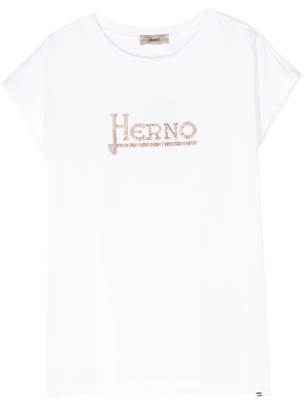 studded-logo T-shirt Highlights - White - Stretch-cotton - Soft jersey - Studded logo detail to the front - Gold-tone logo plaque to the front and rear - Round neck - Cap sleeves - Straight hem - Unlined Made in Italy Composition Cotton 95%, Spandex/Elastane 5% Washing instructions Machine Wash