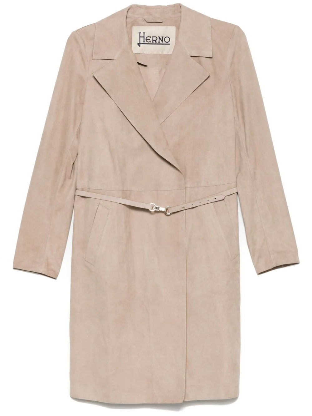 suede coat Highlights - Sand beige - Two side welt pockets - Notched lapels - Long sleeves Imported Composition Goat Skin 100% SIZE & FIT Model measurements Height 5 ft 10 in(1.77 m) Bust/Chest 31.1 in(79 cm) Hips 34.64 in(88 cm) Waist 24.01 in(61 cm) FittingInformation Designed to be unstructured, offering a loose fit throughout The belt offers adjustability for fitted preferences Suede leather has a soft and treated construction offering some flexibility Washing instructions Specialist Cleaning
