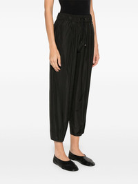 taffeta trousers Highlights - Black - Elasticated drawstring waistband - Two diagonal pockets to the sides - Pleat detailing Imported Composition Polyester 100% SIZE & FIT Model measurements Height 5 ft 10 in(1.79 m) Bust/Chest 33.07 in(84 cm) Hips 35.82 in(91 cm) Waist 24.01 in(61 cm) FittingInformation Designed for a tapered fit, these trousers allow for a close fit at the waist and a loose unrestricted fit over the leg with a closer fit towards the ankle Cropped in length Made from a lightweight non-stretch fabric