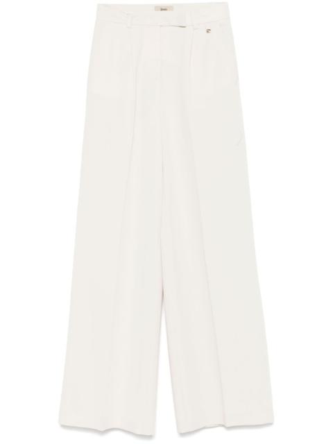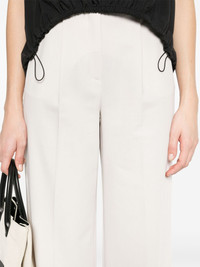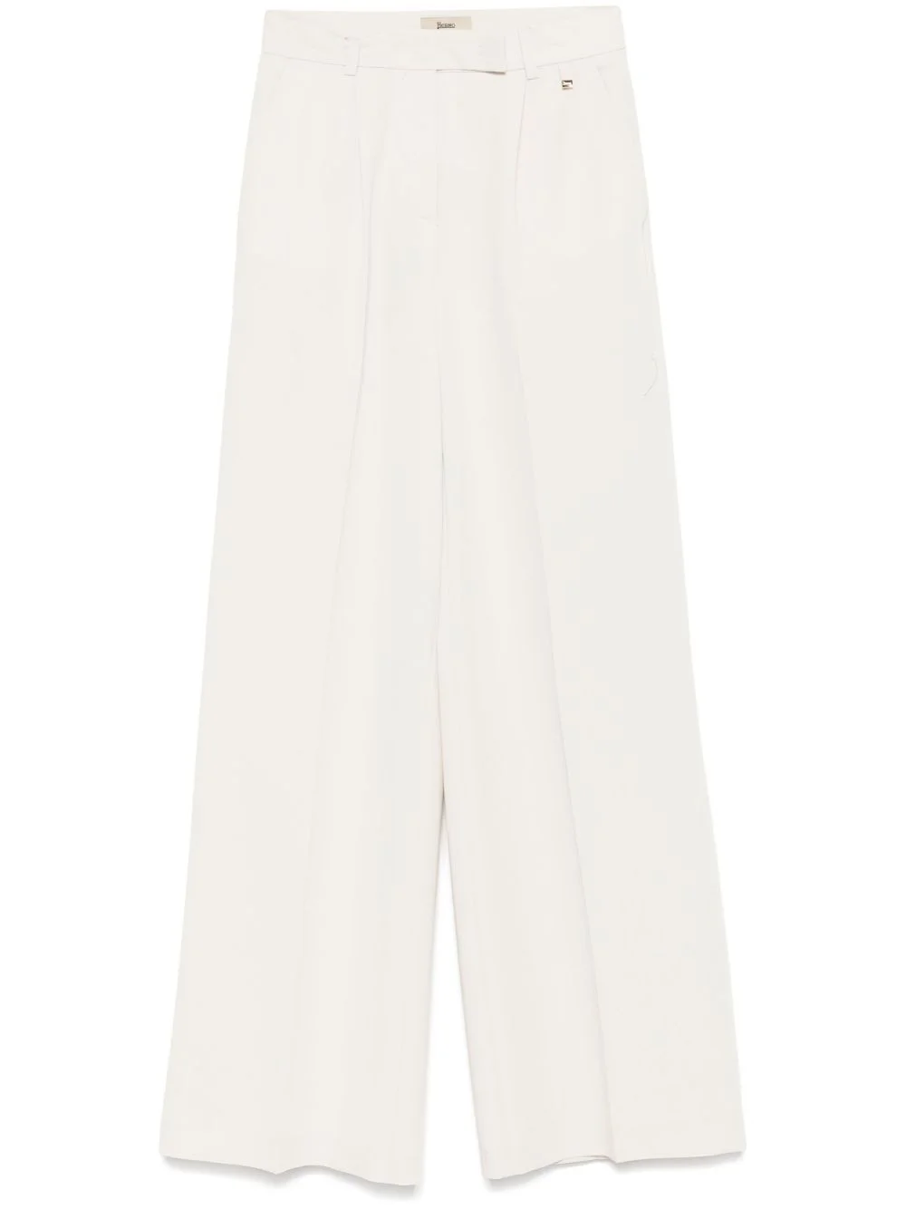 tailored trousers Highlights - Light beige - Concealed front button, hook and zip fastening - Belt loops - Two side slit pockets - Two rear welt pockets Made in Italy Composition Polyester 72%, Viscose 23%, Elastane 5% SIZE & FIT Model measurements Height 5 ft 10 in(1.78 m) Bust/Chest 33.85 in(86 cm) Hips 36.61 in(93 cm) Waist 26.77 in(68 cm) FittingInformation Designed with a wide-leg cut, these trousers allow for a close fit at the waist and offer a loose and roomy fit over the leg Made from a midweight stretch fabric, this piece offers elasticity and flexibility when worn