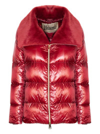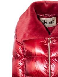 trimmed-collar quilted puffer jacket Highlights - Red - Quilted design - Trimmed-collar - Front zip fastening - Long sleeves - Straight hem Imported Composition Nylon 100%, Artificial Fur 100% Washing instructions Read Manufacturer Guidelines