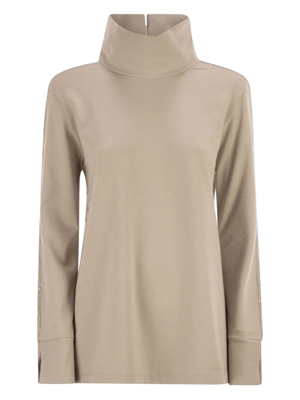 turtleneck logo-detail sweater Highlights - Beige - Metal logo - Zip closure - Turtleneck - Long sleeves Imported Composition Viscose 70%, Polyamide 22%, Elastane 8% Washing instructions Read Manufacturer Guidelines