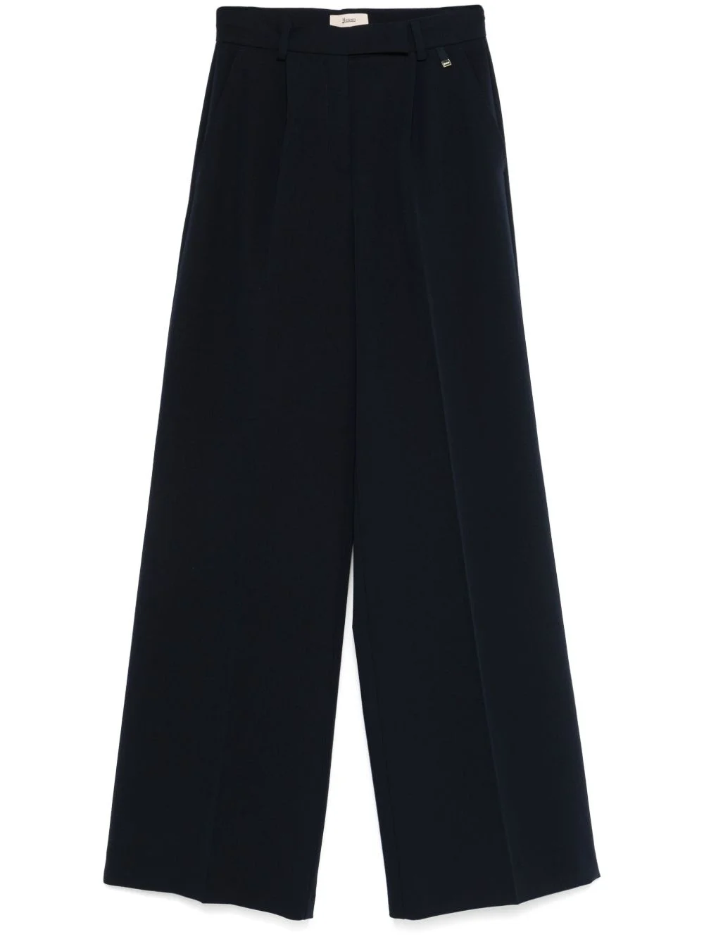 wide-leg trousers Highlights - Navy blue - Concealed front button, hook and zip fastening - Belt loops - Two side inset pockets - Two rear jetted pockets Made in Italy Composition Polyester 72%, Viscose 23%, Elastane 5% SIZE & FIT Model measurements Height 5 ft 10 in(1.78 m) Bust/Chest 33.46 in(85 cm) Hips 36.22 in(92 cm) Waist 23.22 in(59 cm) FittingInformation Designed with a wide-leg cut, these trousers allow for a close fit at the waist and offer a loose and roomy fit over the leg Made from a midweight stretch fabric, this piece offers elasticity and flexibility when worn