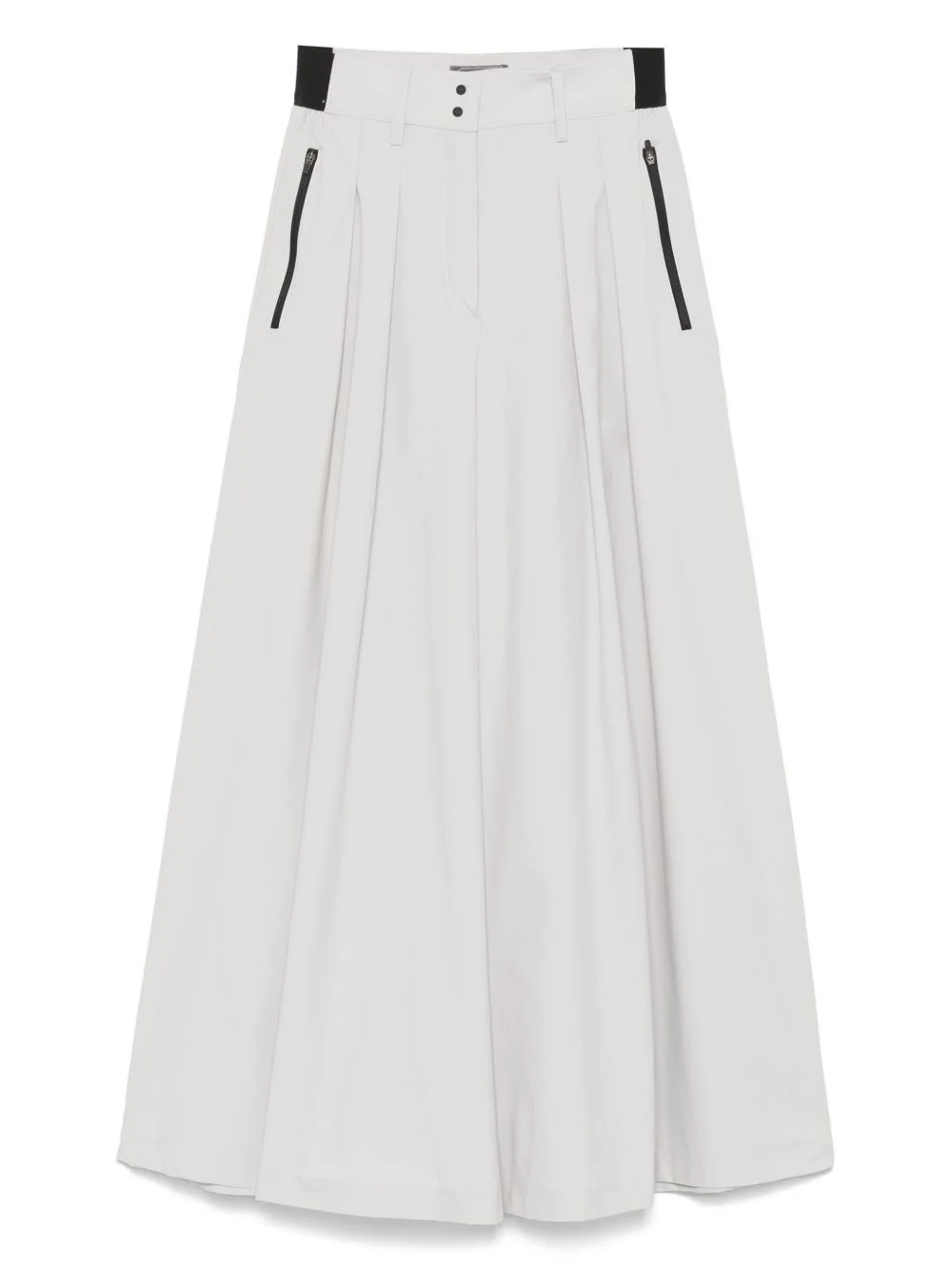 wide-leg trousers Highlights - Light grey - Front press-stud and zip fastening - Belt loops - Two side zip-fastening pockets - Pleat detailing Made in Italy Composition Outer: Polyester 100%, Polyamide 90%, Elastane 10% Lining: Polyester 100% SIZE & FIT Model measurements Height 5 ft 9 in(1.76 m) Bust/Chest 31.88 in(81 cm) Hips 35.43 in(90 cm) Waist 24.8 in(63 cm) FittingInformation Designed with a wide-leg cut, these trousers allow for a close fit at the waist and offer a loose and roomy fit over the leg The partially elasticated waistband offers increased movement and comfort at the waist Made from a midweight stretch fabric, this piece offers elasticity and flexibility when worn Washing instructions Hand Wash