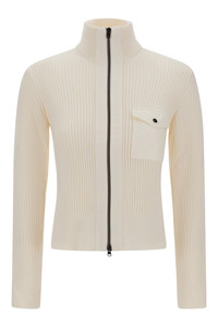 Wool Cardigan With Nylon Trim