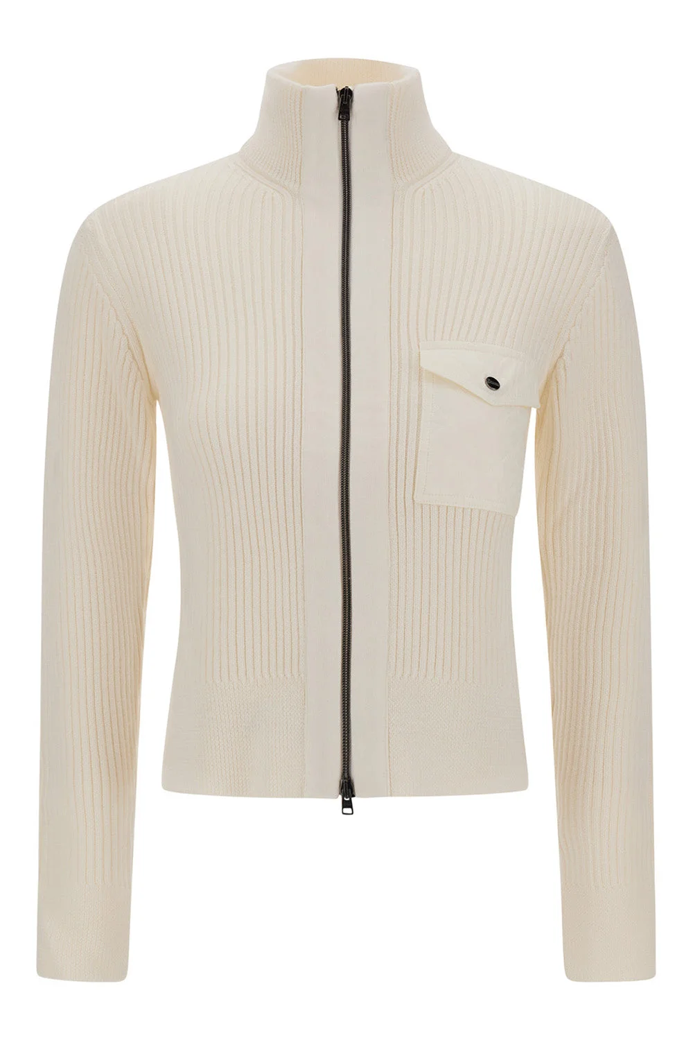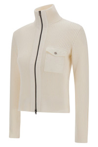 DETAILS AND INSIGHT Herno wool cardigan with nylon trim in bianco. 100% Wool Wash By Hand Imported Style MC000177D-70266-1000