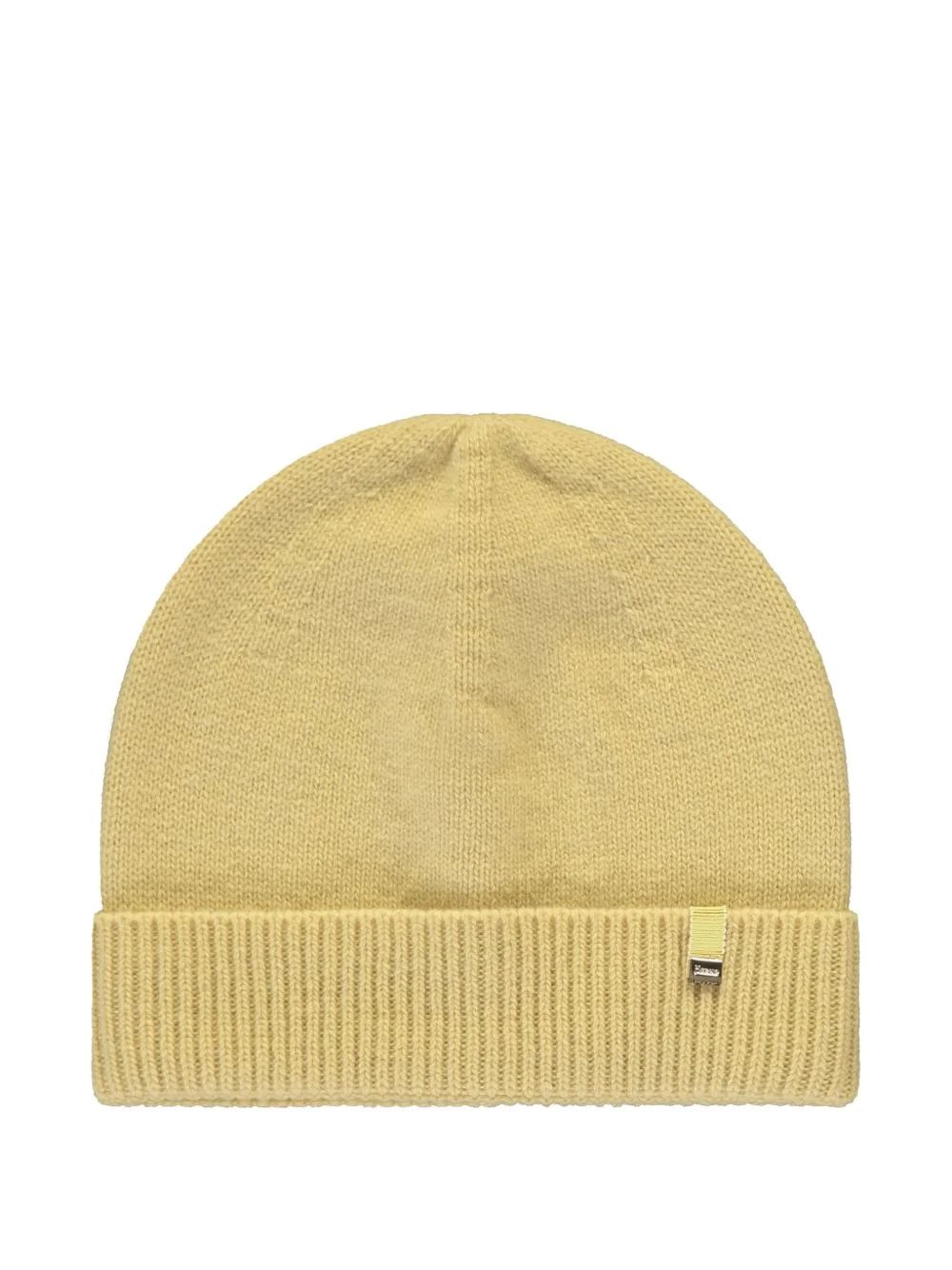 knitted logo-plaque beanie hat Highlights - Yellow - Knitted texture - Ribbed brim - Logo patch Made in Italy Composition Wool 50%, Cotton 25%, Viscose 25%