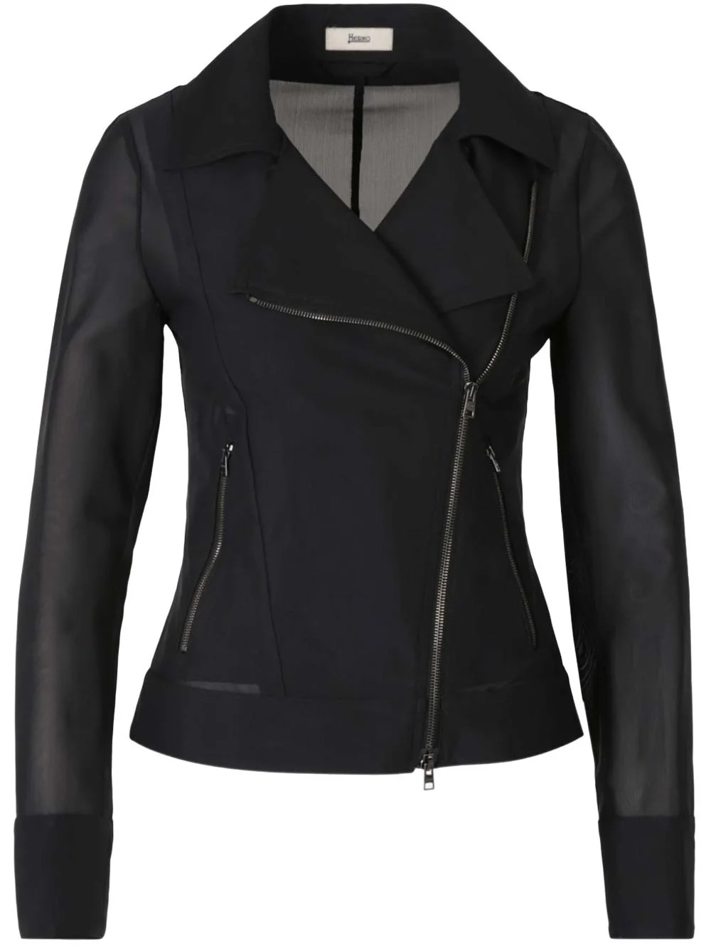 zip-up biker jacket Highlights - Black - Two-way zip fastening - Two side zip-fastening pockets - Logo plaque - Seam detailing Made in Italy Composition Polyamide 88%, Spandex/Elastane 12%