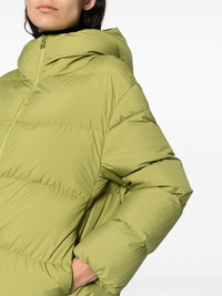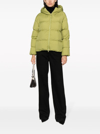zip-up hooded down jacket Highlights - Apple green - Feather down - Padded design - Classic hood - Front two-way zip fastening - Long sleeves - Two side inset pockets - Straight hem Imported Composition Lining: Feather Down 100%, Polyester 100% Outer: Polyester 100% SIZE & FIT Model measurements Height 5 ft 10 in(1.79 m) Bust/Chest 33.07 in(84 cm) Hips 35.82 in(91 cm) Waist 24.01 in(61 cm) FittingInformation Designed to be unstructured, offering a loose fit throughout Made from a padded non-stretch fabric, giving it no natural elasticity This piece fits true to size – take your usual size Washing instructions Dry Clean Only