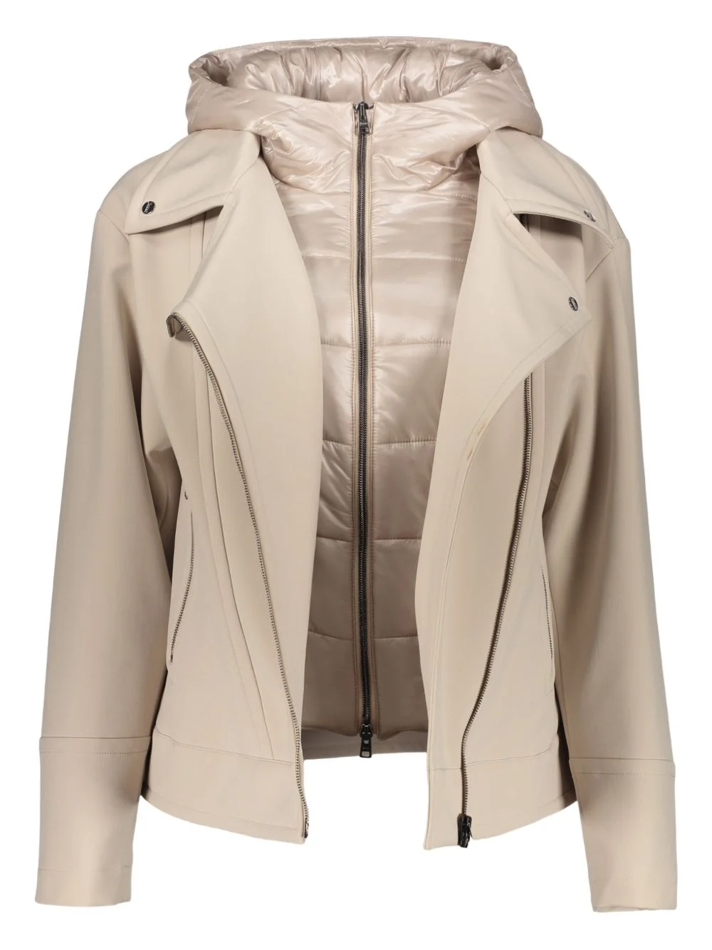 zip-up hooded jacket Highlights - Beige - Zip fastening - Hood - Side zip pockets - Removable padding - Long sleeves Made in Italy Composition Outer: Polyester 92%, Lycra 8% Lining: Polyester 100%, Polyamide 100% Washing instructions Read Manufacturer Guidelines