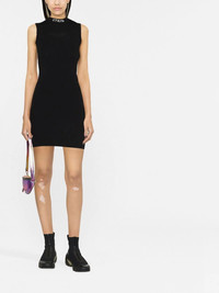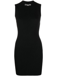 СТИЛЬ-motif knitted dress A key Heron Preston logo, СТИЛЬ translates to mean 'style' - a concept celebrated throughout their designs. It details the neckline of this sleeveless dress in a contrasting white hue. Made in Italy Composition Viscose 72%, Polyester 28% SIZE & FIT Model measurements Height 5 ft 10 in(1.77 m) Bust/Chest 32.67 in(83 cm) Hips 35.43 in(90 cm) Waist 23.62 in(60 cm) Washing instructions Hand Wash