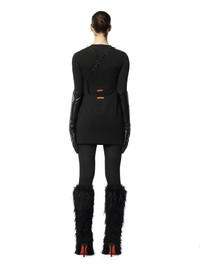 logo-patch criss-cross strap dress from HERON PRESTON featuring black, leather, stretch-design, logo patch to the rear, rear criss-cross straps, round neck, side zip fastening, sleeveless, straight hem and thigh-length. 6% Elastane 28% Viscose 66% Polyester 100% Viscose 100% Leather Bust 0cm Height 0cm Hips 0cm Waist 0cm Product ID: HWDB073F23FAB0011000