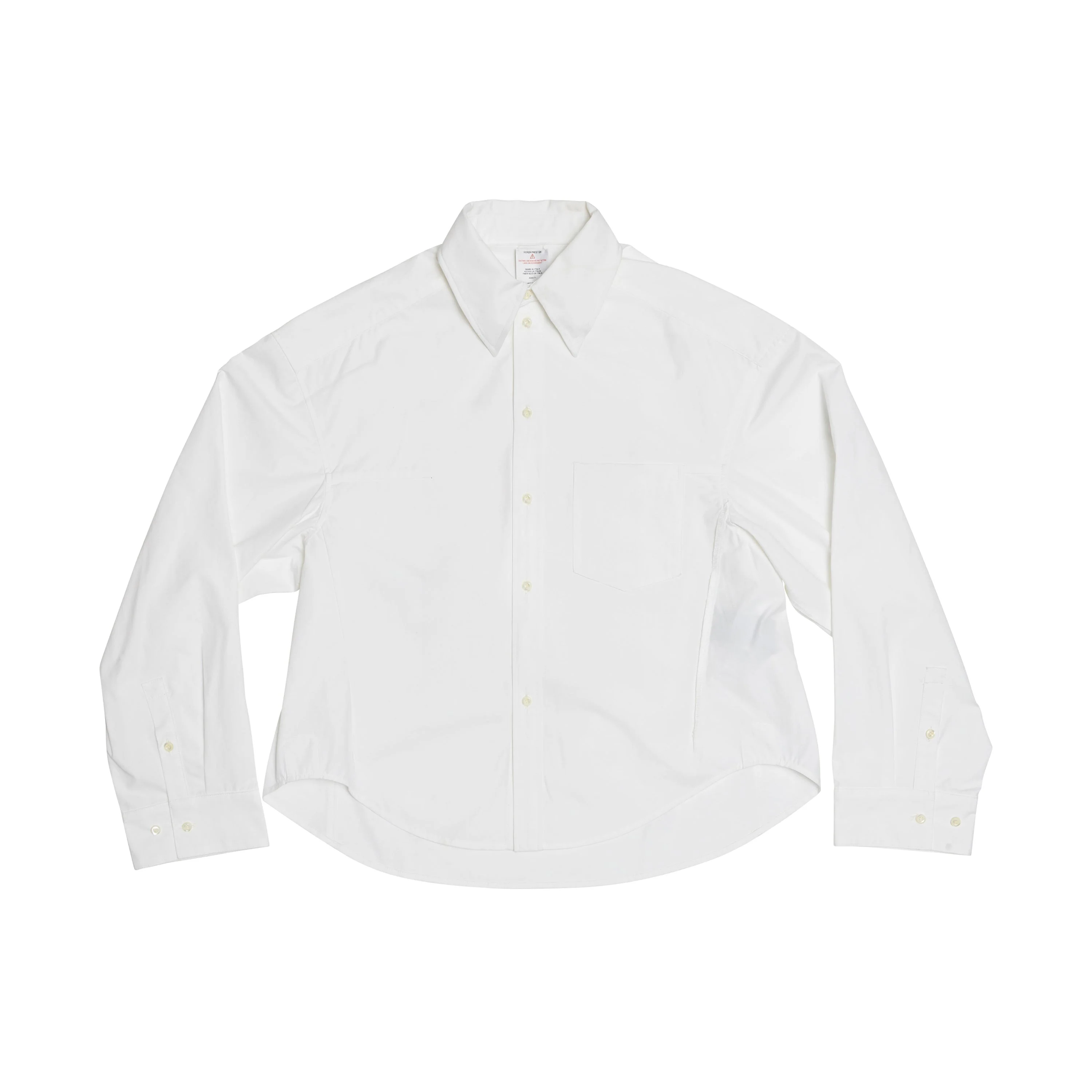 Product Details - Button-Down Collar White Shirt - Heavy Weight - 100% Cotton - Heron Preston screen-printed logo on the inside - Orange label on the neck - Metal wire on the collar - Cut-away inside care label. No itchy skin. - Unisex - Made in Italy Fit Marius is 6’2” (187cm) and is wearing a size L Nisaa is 5’9” (177cm) and is wearing a size L Care Instructions Wash at 40 degrees with similar colors / Do not bleach / Tumble dry at medium temperature / Iron at medium temperature / Dry clean