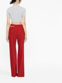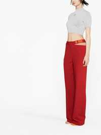 cut-out detail straight-leg trousers Heron Preston features the instantly recognisable orange logo patch at the side of this pair of trousers. Inspired by the colour often seen in workwear uniforms, it adds a utilitarian edge to the garment. Highlights - Red - Front button and zip fastening - Logo patch to the front - Belt loops - Cut-out detailing - Straight leg Made in Italy Composition Outer: Polyester 66%, Viscose 28%, Spandex/Elastane 6% Lining: Viscose 100% SIZE & FIT Model measurements Height 5 ft 10 in(1.77 m) Bust/Chest 31.49 in(80 cm) Hips 35.03 in(89 cm) Waist 23.22 in(59 cm) FittingInformation Designed with a wide-leg cut, these trousers allow for a close fit at the waist and offer a loose and roomy fit over the leg Made from a midweight stretch fabric, this piece offers elasticity and flexibility when worn This piece fits true to size – take your usual size Washing instructions Dry Clean Only