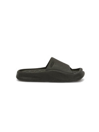 Black square-toe moulded slides featuring HERON PRESTON logo. Open toe, square toe, slip-on style, branded insole and chunky rubber sole. More than 50% of this product in weight is made out of certified recycled pre-consumer thermoplastic rubber. 100% Rubber 100% Rubber 100% Rubber Product ID: HWIC003C99MAT0011000