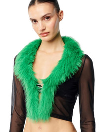 faux-fur mesh cardigan from HERON PRESTON featuring black, faux-fur trim, semi-sheer construction, V-neck, long sleeves and cropped. 7% Elastane 93% Nylon 100% Polyester Bust 0cm Height 0cm Hips 0cm Waist 0cm Product ID: HWAD046F23FAB0011000