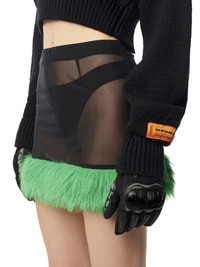 faux-fur straight skirt from HERON PRESTON featuring black, emerald green, stretch-design, semi-sheer construction, faux-fur detail, elasticated waistband, straight hem and thigh-length. 100% Polyester 93% Nylon 7% Elastane Bust 0cm Height 0cm Hips 0cm Waist 0cm Product ID: HWCU004F23FAB0011000