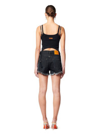 Rib knit black tank top featuring strap detail at front. Orange logo patch at back. Slim fit. 95% Cotton 5% Elastane Model Claudia Vega wears size S Height: 5' 8.5" (174cm) Chest: 31" (80cm) Waist: 23" (59cm) Product ID: HWAC005S23JER0011000