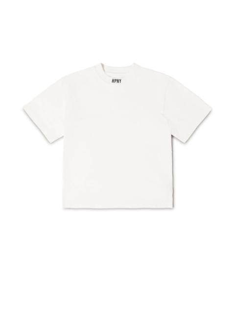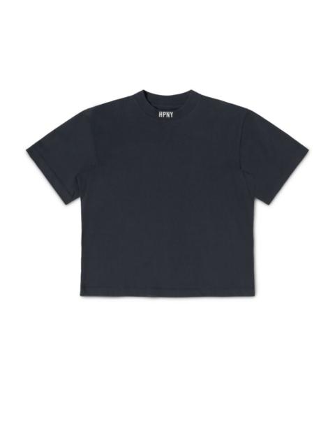Black t-shirt featuring white HPNY logo embroidered at neck. Orange logo patch at back. Crewneck collar. 100% Cotton 100% Polyester Model Claudia Vega wears size S Height: 5' 8.5" (174cm) Chest: 31" (80cm) Waist: 23" (59cm) Product ID: HWAA033C99JER0021001