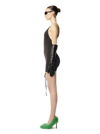 lace-up strech minidress from HERON PRESTON featuring black, stretch-design, front lace-up fastening, logo patch to the rear, round neck, adjustable spaghetti straps, straight hem and thigh-length. 87% Nylon 13% Elastane Bust 0cm Height 0cm Hips 0cm Waist 0cm Product ID: HWDB074F23FAB0011000