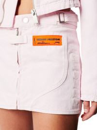 Pink canvas skirt featuring HERON PRESTON embroidered at sides. Orange logo patch at front. Zip closure. 100% Cotton 100% Cotton Model Claudia Vega wears size 40 Height: 5' 8.5" (174cm) Waist: 23" (59cm) Hips: 35" (88cm) Product ID: HWCC041S23FAB0013434