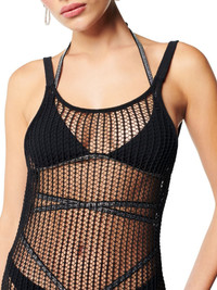 Long black fishnet dress with open back. 100% Cotton Model Claudia Vega wears size S Height: 5' 8.5" (174cm) Chest: 31" (80cm) Waist: 23" (59cm) Product ID: HWHI016S23KNI0011000