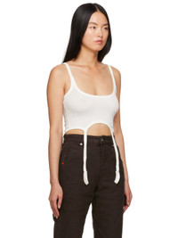 Stretch organic cotton ribbed jersey tank top. · Scoop neck · Garter straps at asymmetric hem · Logo patch at back collar Supplier color: Ivory Body: 95% organic cotton, 5% elastane. Trim: 100% polyester. Made in Portugal 232967F111007