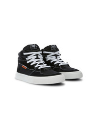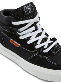 Toby mid-top sneakers from HERON PRESTON featuring black/white, cotton, canvas, contrast stitching, logo patch at the tongue, logo patch to the side, logo at the sole, round toe, front lace-up fastening, branded insole and flat rubber sole. 100% Cotton 100% Rubber 96% Cotton 4% Bovine Leather (top grain) Bust 0cm Height 0cm Hips 0cm Waist 0cm Product ID: HWIM001F23FAB0021010