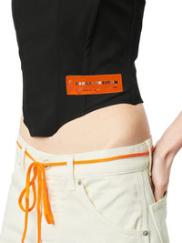Corset in black. Zip closure at back. Orange logo patch at front. 6% Elastane 66% Polyester 28% Viscose 100% Viscose Model Daria Dan wears size S Height: 5’ 9” 1/2 (176 cm) Chest: 31” (79 cm) Waist: 23" 1/2 (60 cm) Product ID: HWAD030F22FAB0011000