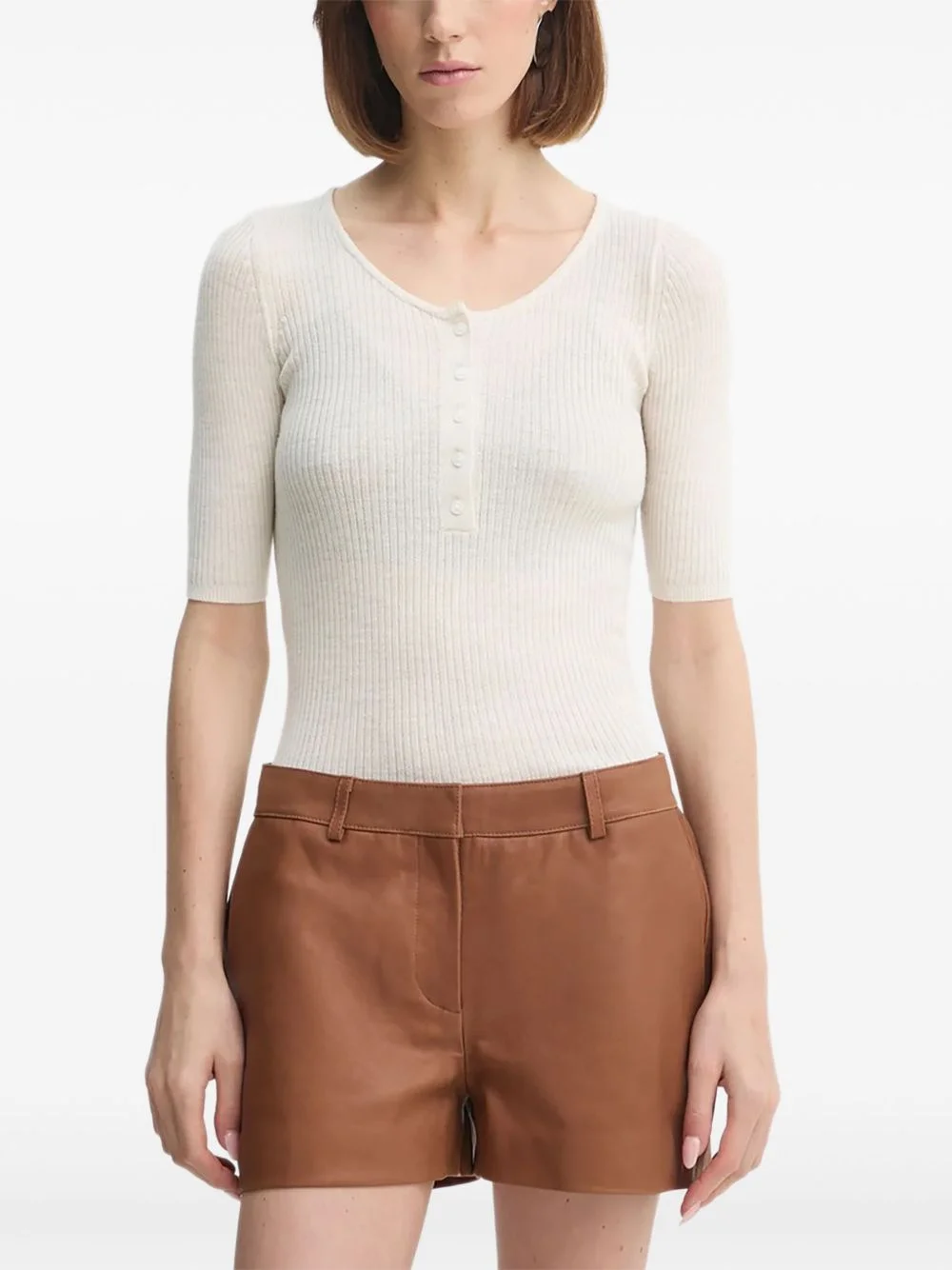 cotton shorts Highlights - Brown - Leather - Front pockets - High waist - Button fly - Straight hem Imported Composition Cotton 94%, Elastane 6% Washing instructions Read Manufacturer Guidelines