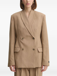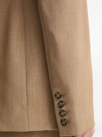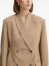 double-breasted buttoned blazer Highlights - Sand beige - Double-breasted closure - Buttoned cuffs - Structured shoulders - Flap pockets - Straight hemline Imported Composition Polyester 63%, Viscose 32%, Elastane 5% Washing instructions Read Manufacturer Guidelines