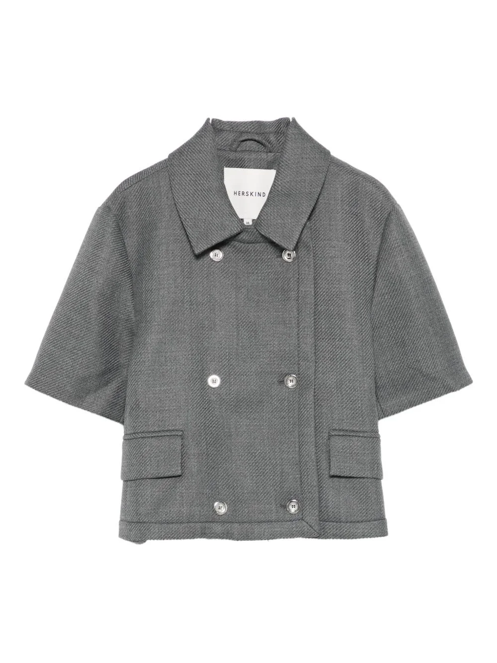 Earl double-breasted cropped jacket Highlights - Grey - Short sleeve - Double-breasted - Flap pockets - Button fastening Imported Composition Polyester 65%, Wool 35% Washing instructions Read Manufacturer Guidelines