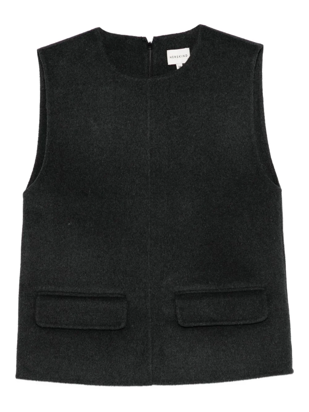 Ease top Highlights - Dark grey - Wool blend - Front flap pockets - Sleeveless Imported Composition Wool 70%, Polyester 20%, Cashmere 10% Washing instructions Read Manufacturer Guidelines