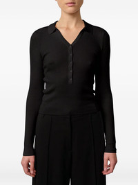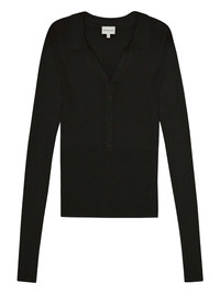 Finn ribbed polo neck blouse Highlights - Black - Ribbed knit - Polo neck - Button placket - Long sleeves Imported Composition Lyocell 69%, Cotton 25%, Silk 6% Washing instructions Read Manufacturer Guidelines