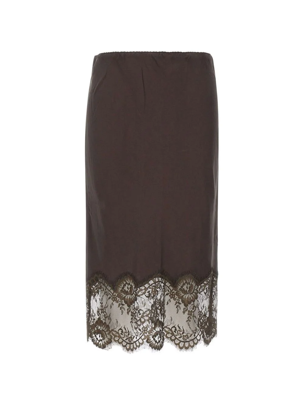 Herbert skirt Highlights - Brown - Lace trim - Fitted silhouette - Elasticated waistband Imported Composition Viscose 50%, Rayon 50% Washing instructions Read Manufacturer Guidelines
