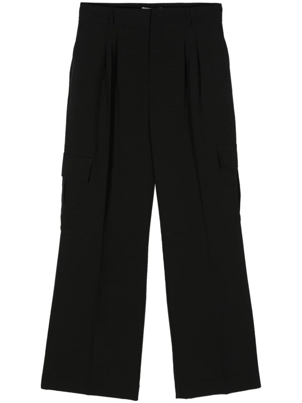 Louise mid-waist straight-leg trousers Highlights - Black - Recycled polyester blend - Jersey texture - Mid-rise - Belt loops - Pleat detailing - Pressed crease - Two diagonal pockets to the sides - Two side cargo pockets - Two rear faux jetted pockets - Straight leg - Unlined - Concealed front button, hook and zip fastening Imported Composition Outer: Cotton 100%, Recycled Polyester 94%, Elastane 6% Lining: Acetate 100%