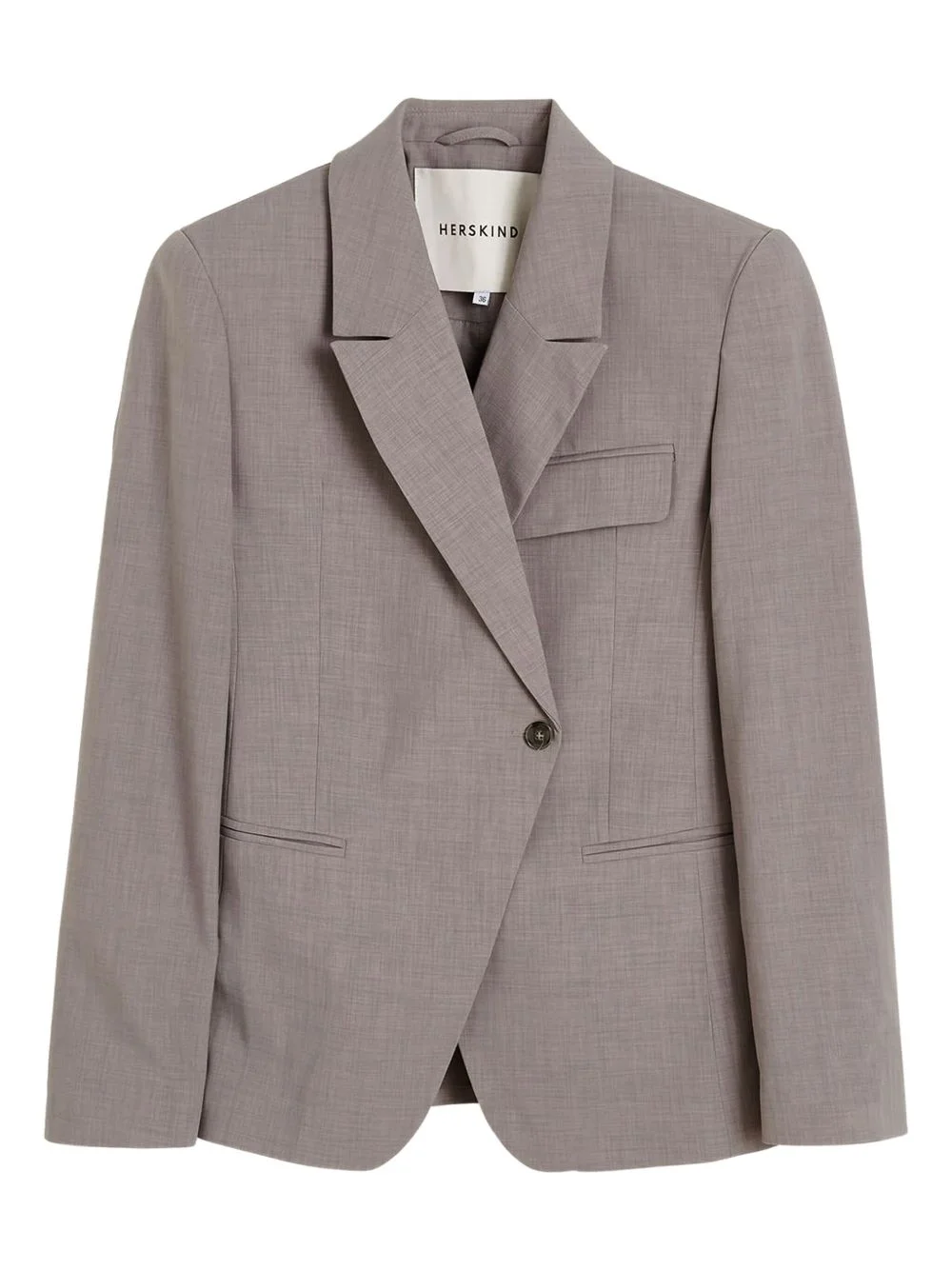 Oprah blazer Highlights - Taupe grey - Side button fastening - Chest flap pocket - Two front jetted pockets Imported Composition Recycled Polyester 94%, Elastane 6% Washing instructions Read Manufacturer Guidelines