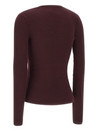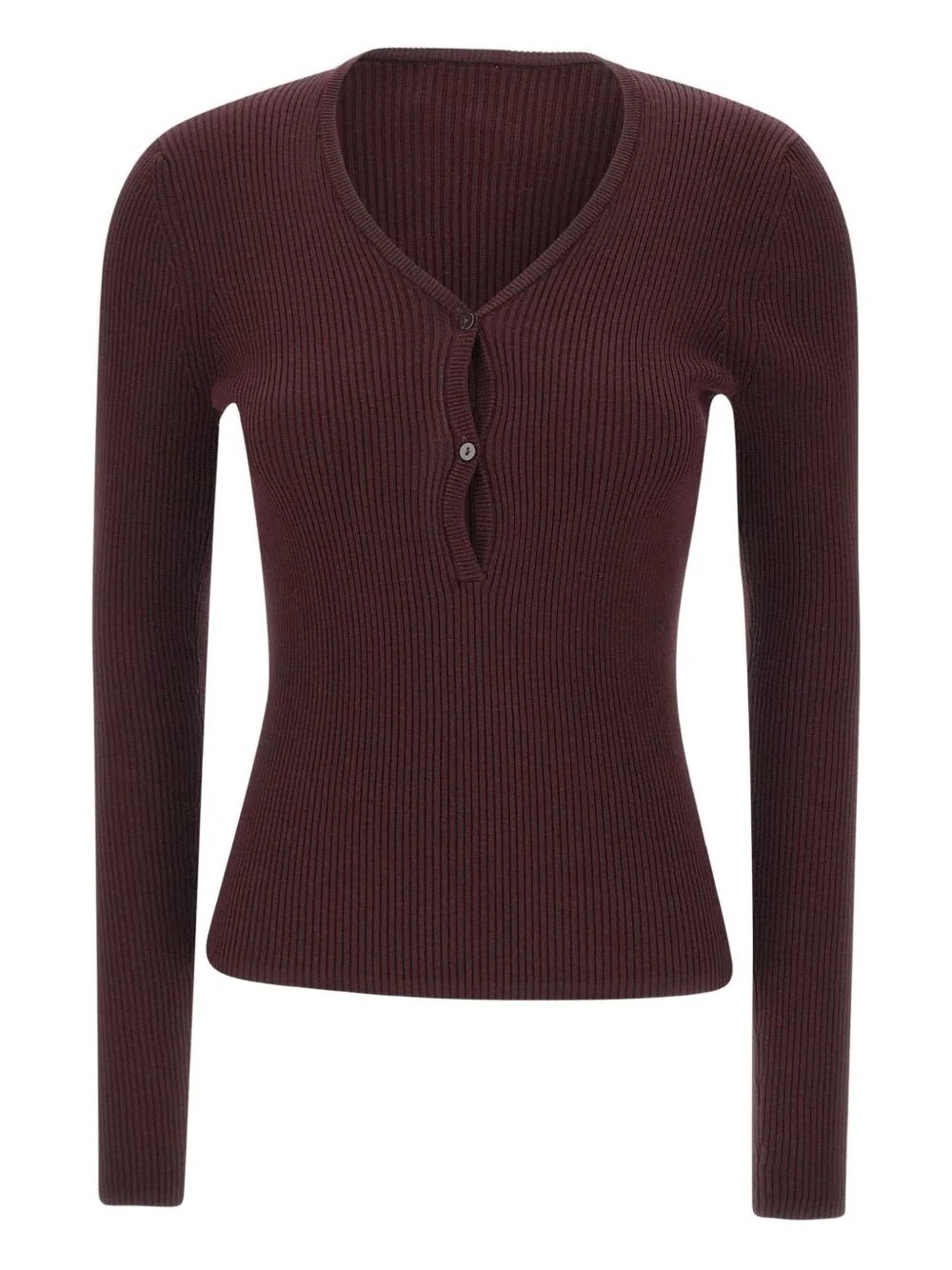 Oscar ribbed V-neck sweater Highlights - Burgundy - Ribbed texture - V-neck - Short button fastening - Long sleeves - Close-fitting Imported Composition Lyocell 69%, Cotton 25%, Silk 6% Washing instructions Read Manufacturer Guidelines