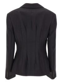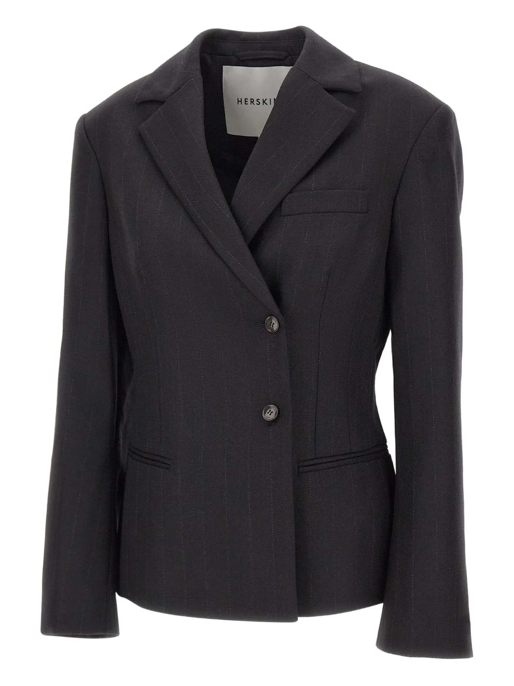 pinstripe-pattern blazer Highlights - Black - Pinstripe pattern - Asymmetric two-button closure - Padded shoulders - Front welt pockets - Chest jetted pocket Imported Composition Outer: Wool 99%, Polyester 1% Washing instructions Read Manufacturer Guidelines