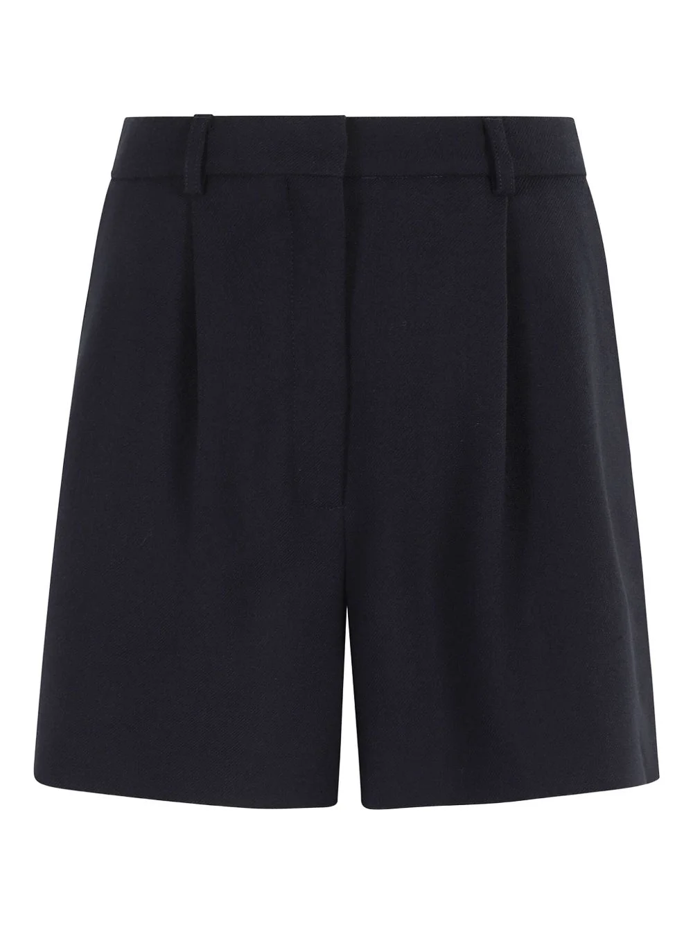 pleated tailored shorts Highlights - Navy blue - Pleated front - Belt loops - Welt pockets - Straight hem Imported Composition Polyester 53%, Wool 43%, Elastane 4% Washing instructions Read Manufacturer Guidelines