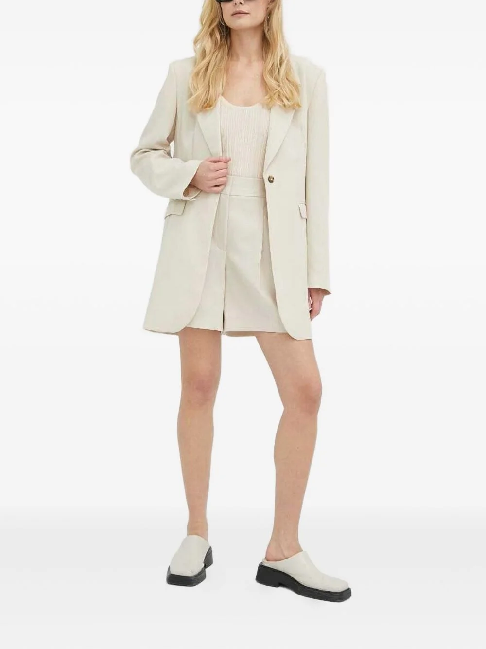pleated tailored shorts Highlights - Off-white - Pleated front - Slash pockets - Belt loops Imported Composition Recycled Polyester 94%, Elastane 6% Washing instructions Read Manufacturer Guidelines