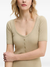 ribbed button-front maxi dress Highlights - Beige - Ribbed knit - Short sleeves - Round neck - Button placket Imported Composition Lyocell 69%, Cotton 25%, Silk 6% SIZE & FIT FittingInformation Designed for a close fit throughout Made with a midweight knit, this piece offers some stretch Washing instructions Read Manufacturer Guidelines