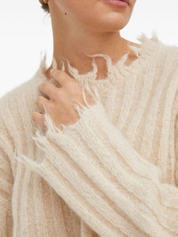 ribbed-frayed sweater Highlights - Beige - Ribbed knit - Frayed hem - Frayed round neck - Long sleeves Imported Composition Fabric 100% Washing instructions Read Manufacturer Guidelines